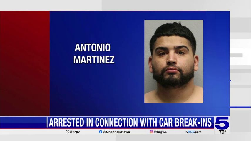 Police said 25-year-old Antonio Martinez of McAllen was arrested on charges of aggravated robbery, evading arrest, and four counts of burglary of a vehicle in connection with a vehicle break-in that was reported on Wednesday morning.