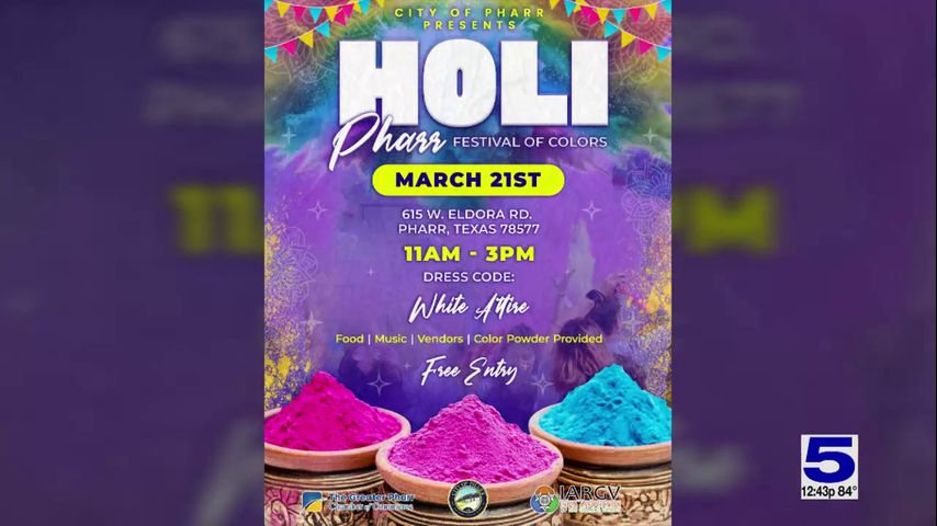 The Holi Pharr Festival of Colors is scheduled for Saturday, March 21 at 615 West Eldora Road from 11 a.m. to 3 p.m.