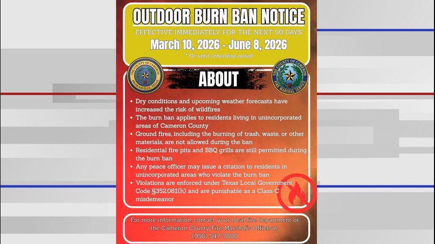The ban will stay in effect through June 8, 2026. It could be lifted earlier if the Cameron County Fire Marshal's Office updates its recommendations.