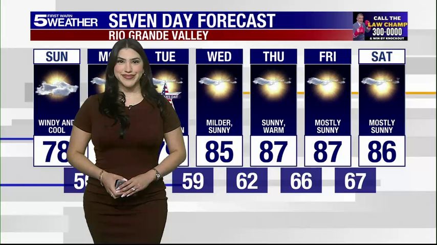 Sunday, Nov. 9, 2025: Windy and cool, temps in the 70s