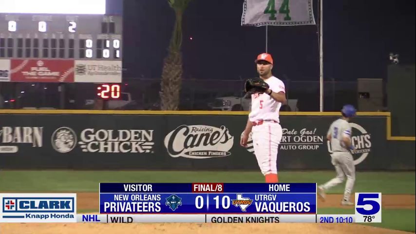 UTRGV will face New Orleans for the second game of the series on Saturday. First pitch is scheduled for 6:30 p.m. from Edinburg.
